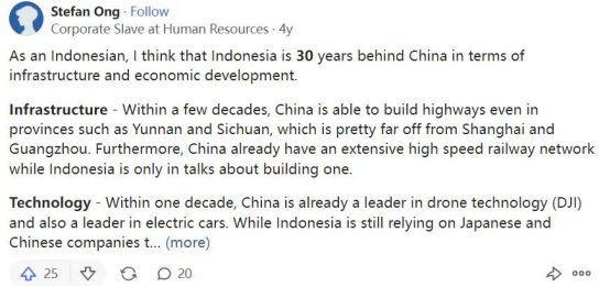 有印尼网友是这样说的:“现在的印尼,不如30年前的中国。”